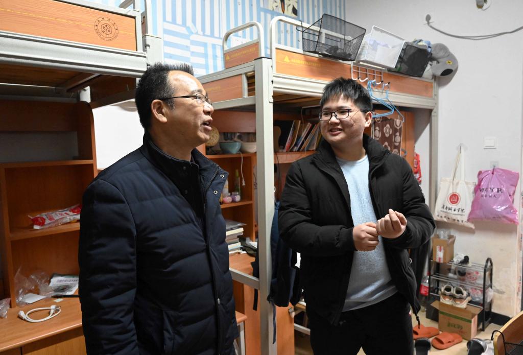 本网讯(记者 博夕)为保障新学期开学各项工作有条不紊地进行,2022年2月16日上午,党委书记李建奇带队,副校长袁志成,纪委书记陈列尊,党委委员、组织部部长吕贤军以及党政办、学生工作处、基建与后勤管理处单位负责人,深入学生宿舍、食堂,走访检查新学期开学准备工作。