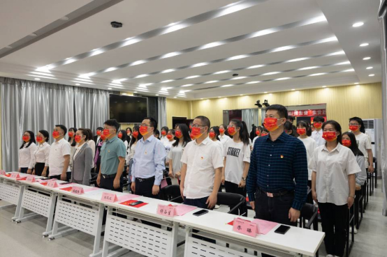 “勤奋学习,积极工作,吃苦在前,享受在后,为共产主义事业而奋斗。”新老团员代表们在团旗下庄严宣誓,星星火炬将伴随他们成长,共青团将指引他们前进!